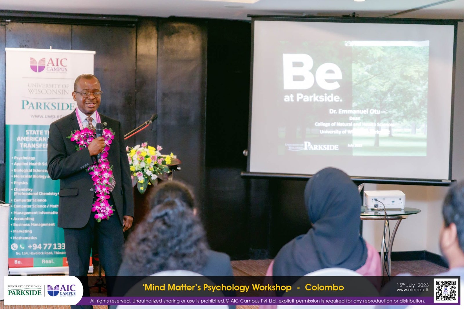 Mind Matters American Psychology workshop was successfully conducted on the 16th of July 2023 at Cinnamon Grand Colombo.Students had the opportunity of meeting Prof. Emmanuel Otu, Dean – College of Natural and Health Sciences of the University of Wisconsin Parkside, USA.