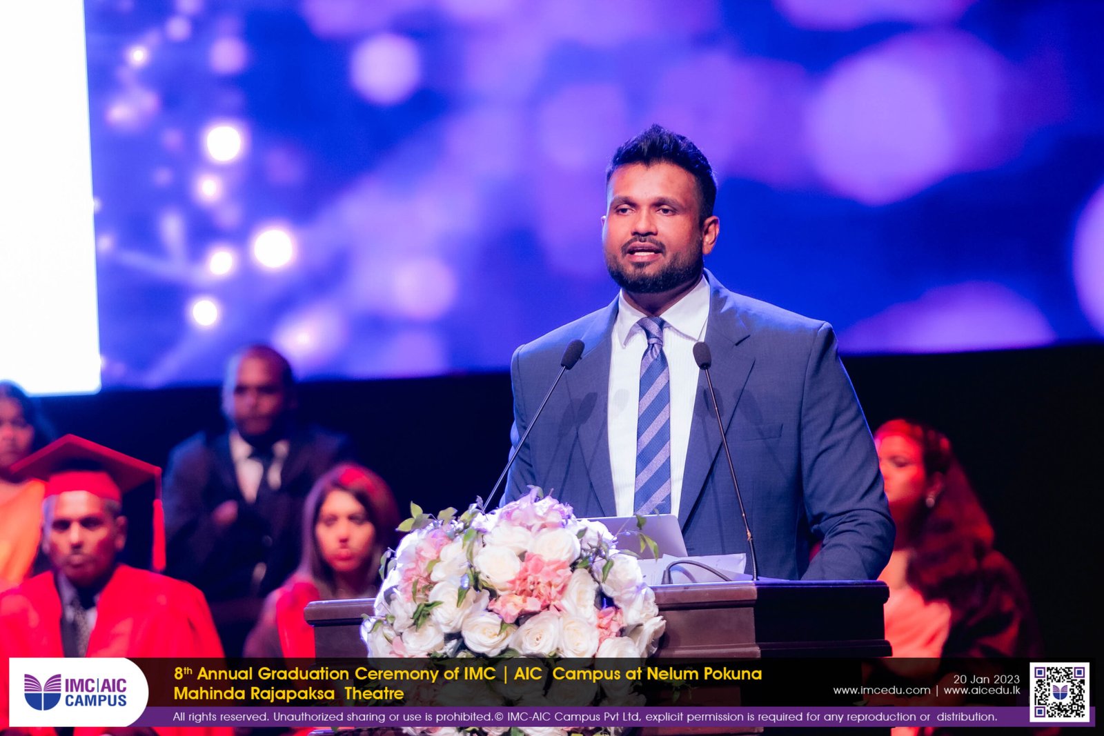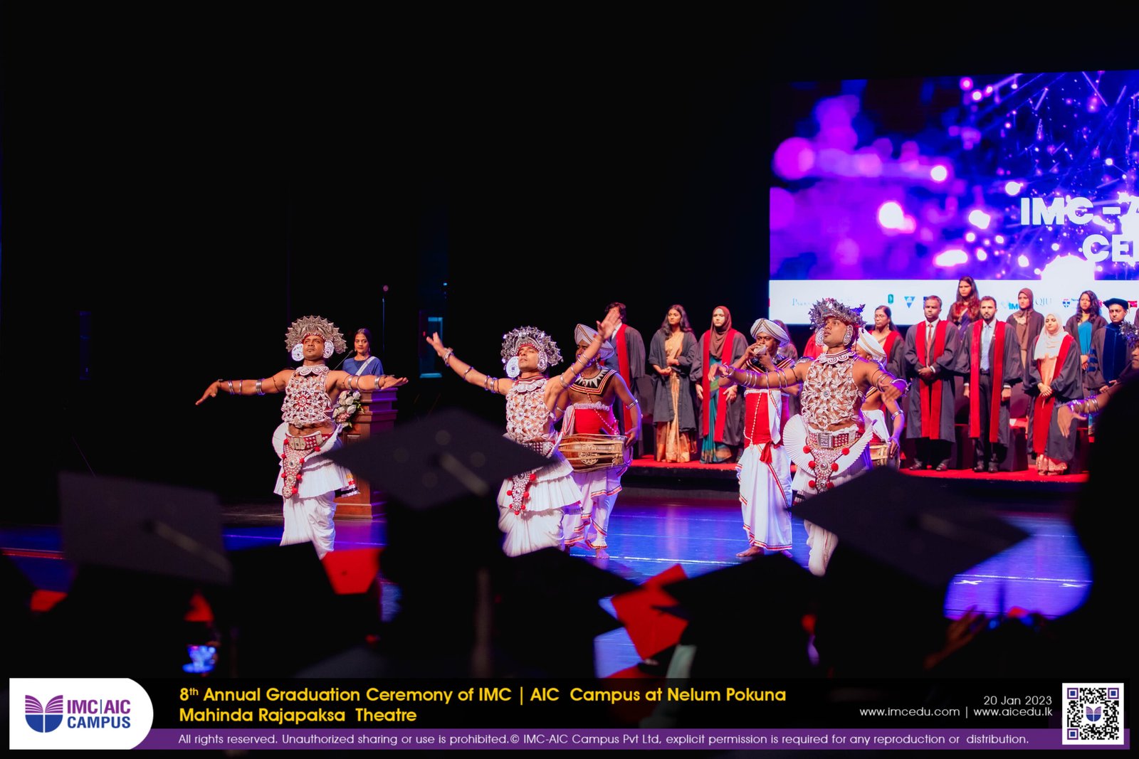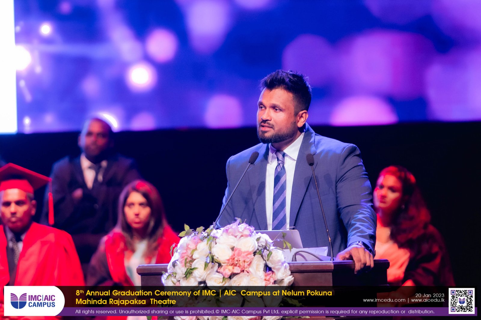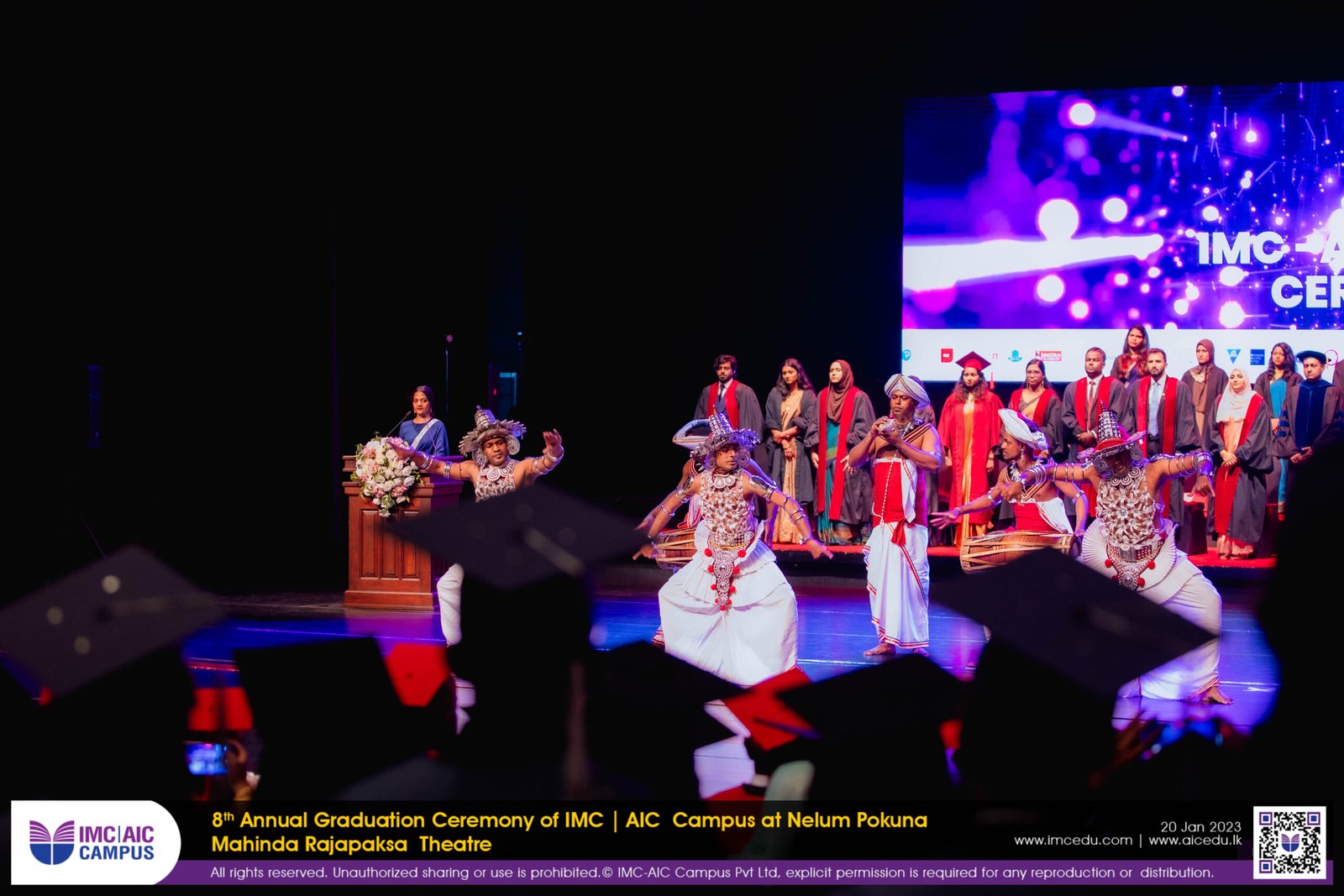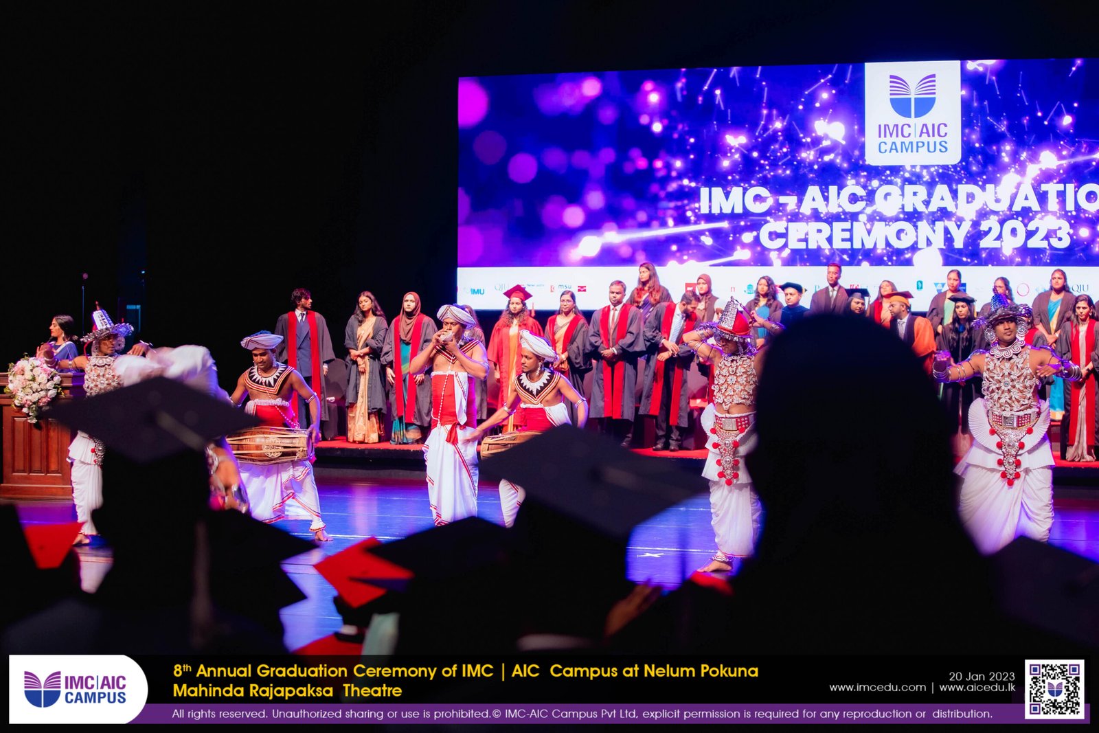 The 8th Annual IMC-AIC Graduation Ceremony was held on the 20th of January 2024 at the Nelum Pokuna Mahinda Rajapaksa Theatre. The Honorary Chief Guests of the day was the Ambassador Extraordinary and Plenipotentiary of the French Republic of Colombo, Sri Lanka H.E. Mr. Jean Francois Pactet and Ambassador for the High Commission of Malaysia in Colombo, Sri Lanka H.E. Badli Hisham Adam along with the Chief Guest Mr. Harsha Rajan, Partner – Audit, Head of PPC, KPMG in Sri Lanka.